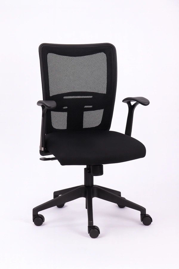 Glass lled nylon mesh back with xed lumbar support & fabric seat. Fix/ Adjustable PP armrest. Synchro tilt mechanism with single position lock. 650mm nylon base with 60 mm nylon castors & class 4 gaslift.