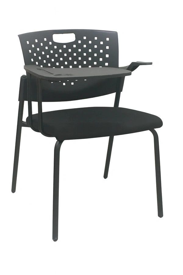 Glass lled nylon back with arms & fabric seat. Flip top design PP writing pad with metal support frame. Mild steel powder coated round pipe frame