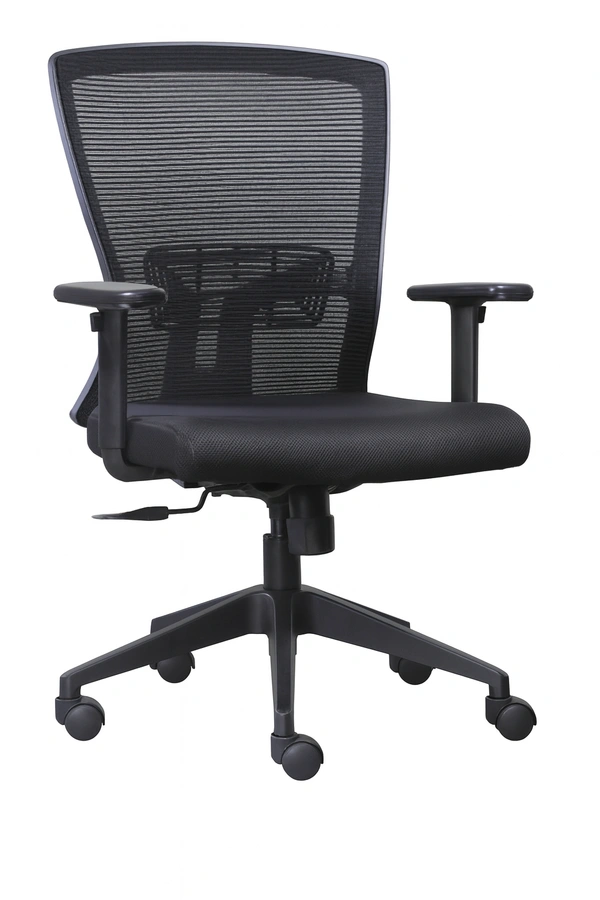 Glass lled nylon mesh back with xed lumbar support & fabric seat. Fix/ Adjustable PP armrest. Synchro tilt mechanism with single position lock. 650mm nylon base with 60 mm nylon castors & class 4 gaslift.