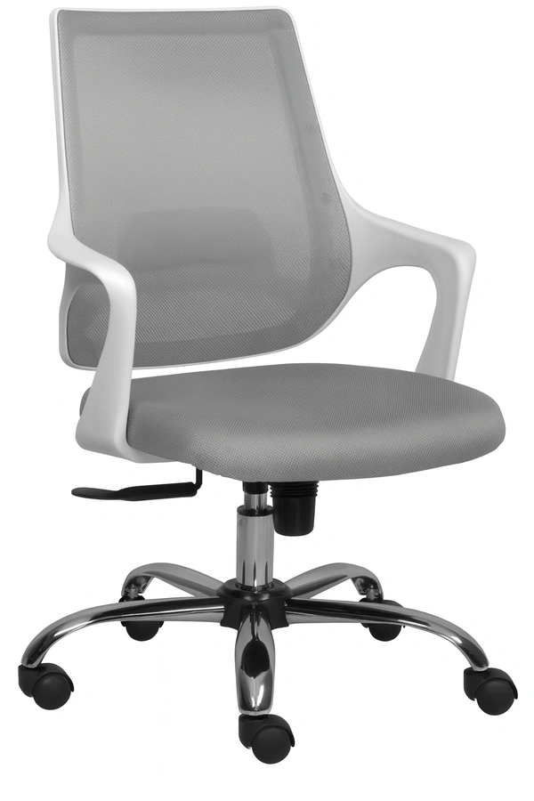 Glass lled nylon mesh back with inbuilt lumbar support & fabric seat. Fix PP armrest attached to the back. Center tilt mechanism with single position lock. 650mm chrome base with 60 mm nylon castors & class 4 gaslift.