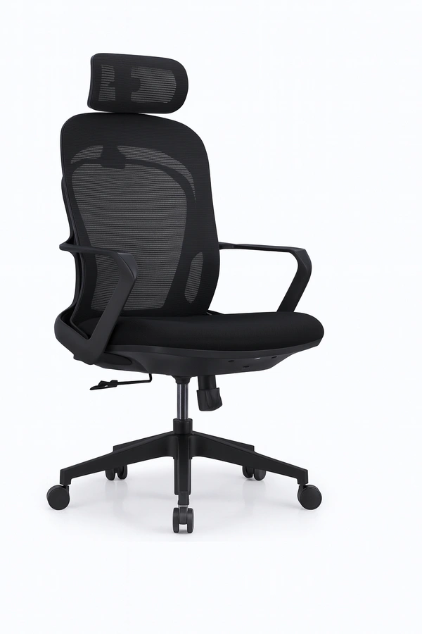 Glass lled nylon mesh back with xed lumbar support & fabric seat. Fix PP armrest attached to the back. Center tilt mechanism with single position lock. 650mm nylon base with 60 mm nylon castors & class 4 gaslift