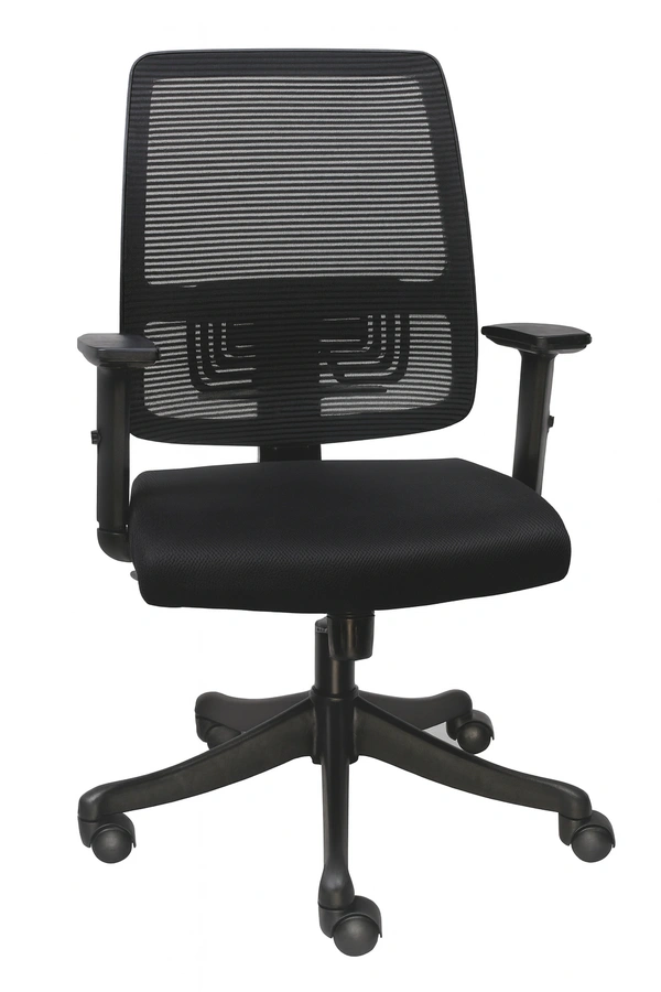 Glass lled nylon mesh back with xed lumbar support & fabric seat. Fix/ Adjustable PP armrest. Synchro tilt mechanism with single position lock. 650mm nylon base with 60 mm nylon castors & class 4 gaslift.