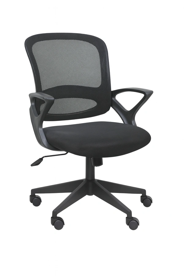 Glass lled nylon mesh back with inbuilt lumbar support & fabric seat. Fix PP armrest attached to the back. Center tilt mechanism with single position lock. 650mm nylon base with 60 mm nylon castors & class 4 gaslift