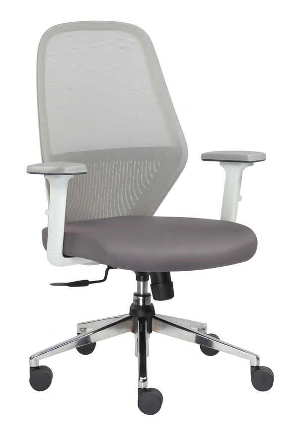Glass lled nylon mesh back with xed lumbar support & fabric seat. Adjustable PP armrest. Center tilt synchro mechanism with single position lock. 650mm chrome base with 60 mm nylon castors & class 4 gaslift