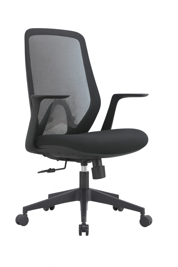Glass lled nylon mesh back with xed lumbar support & fabric seat. Fix PP armrest. Synchro tilt mechanism with single position lock. 650mm nylon base with 60 mm nylon castors & class 4 gaslift
