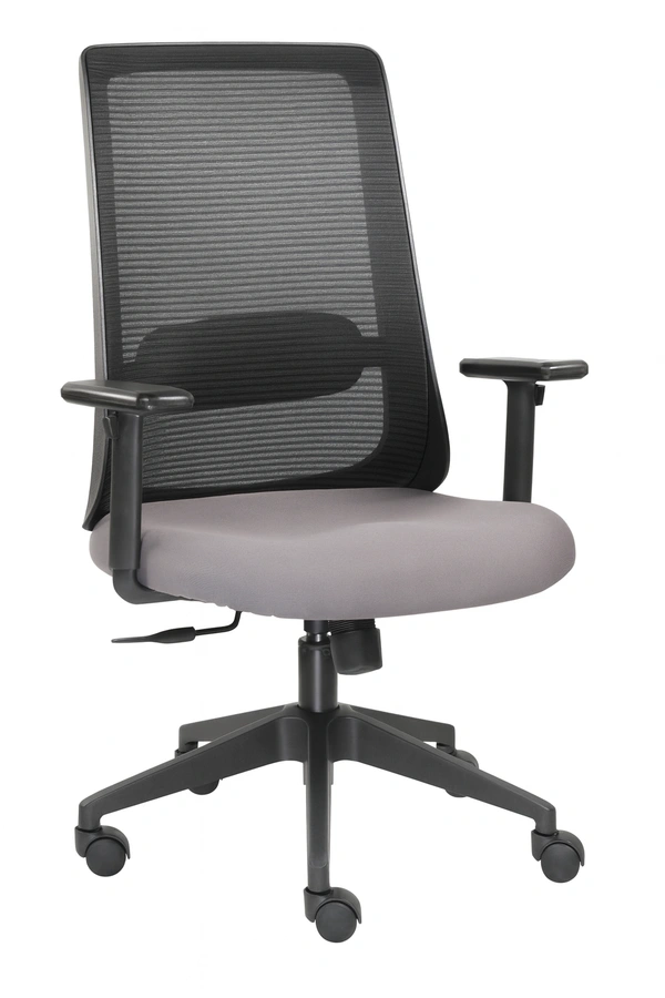 Glass lled nylon mesh back with xed lumbar support & fabric seat. 2D Adjustable PP armrest. Synchro tilt mechanism with single position lock. 650mm nylon base with 60 mm nylon castors & class 4 gaslift